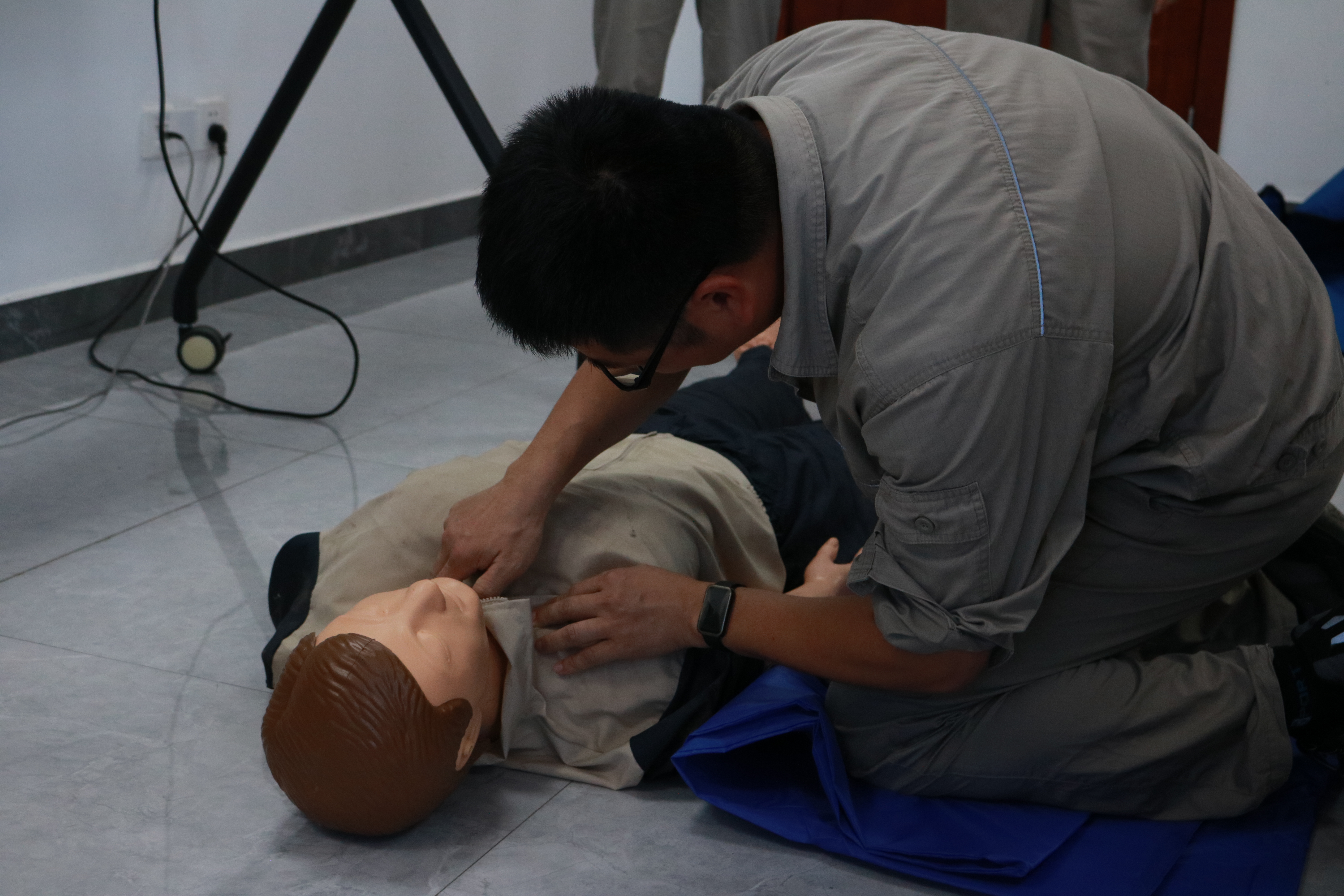 为普及应急救援知识,提升员工应对突发心脏骤停事件的应急处置能力,9月10日下午,东粤环保HSE管理部邀请揭阳市人民医院广东石化医疗站外科主任医师陈宏在205会议室开展心肺复苏术(CPR)与自动体外除颤器(AED)专项培训,公司各部门员工参与学习。